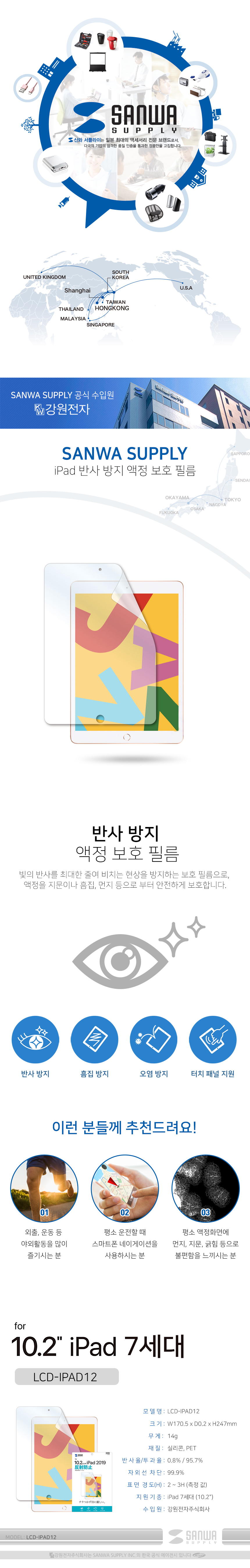 강원전자 산와서플라이 LCD-IPAD12 iPad 7세대 반사 방지 액정 보호 필름 LCD-IPAD12
