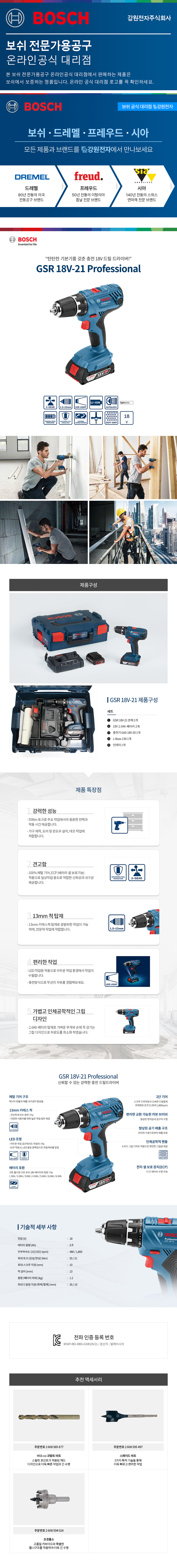 보쉬 GSR 18V-21 충전 드릴 드라이버 세트(06019H10B3) GSR 18V-21