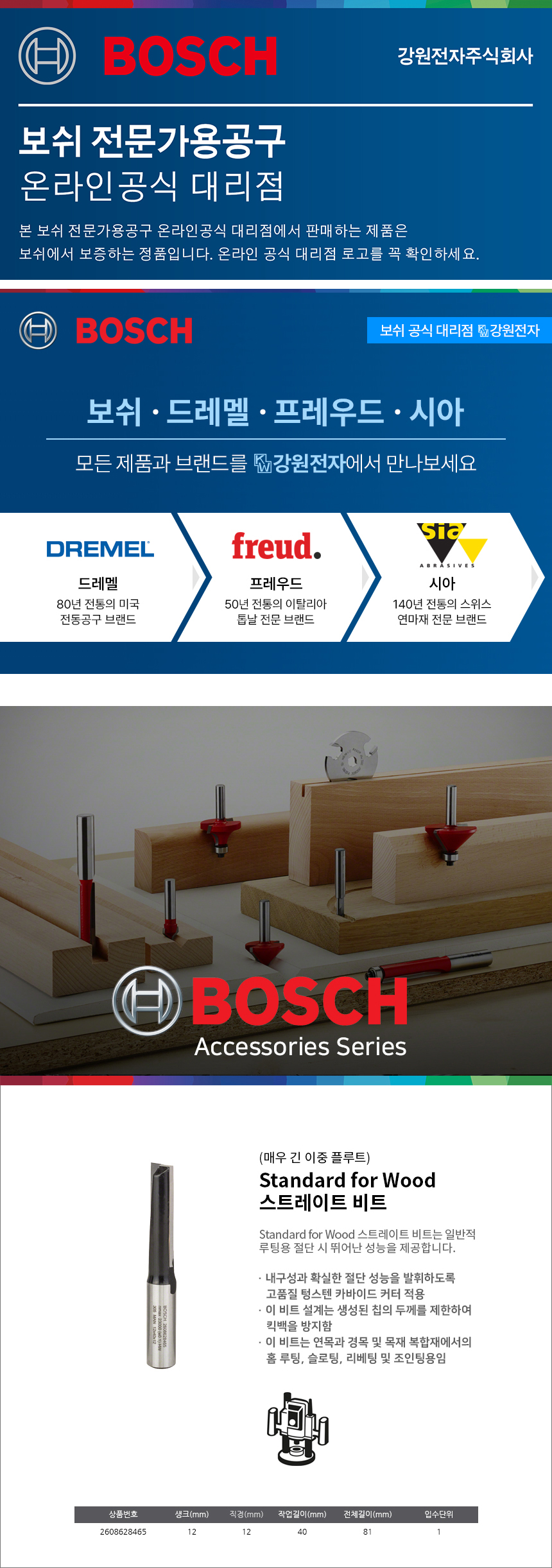 보쉬 루터 트리머 D12mm 스트레이트 비트 12mm(2608628465) Router Bit 2608628465