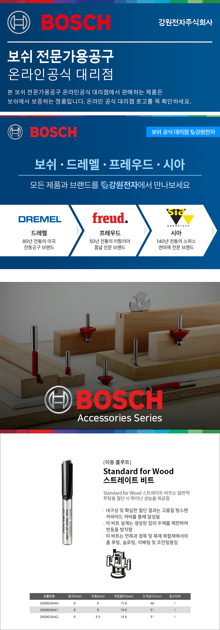 보쉬 루터 트리머 D8mm 스트레이트 비트 6mm(2608628441)