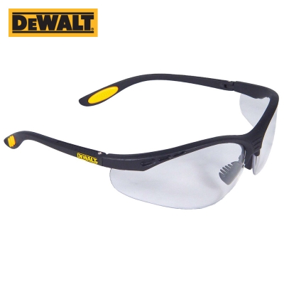 • Dewalt, 랩어라운드, 곡선형 프레임, 152x65x50mm, 28g, UV 99.9%차단, Class 1 광학 등급 렌즈, 소프트 고무 코받침, 프레임 다리 쿠션 패드