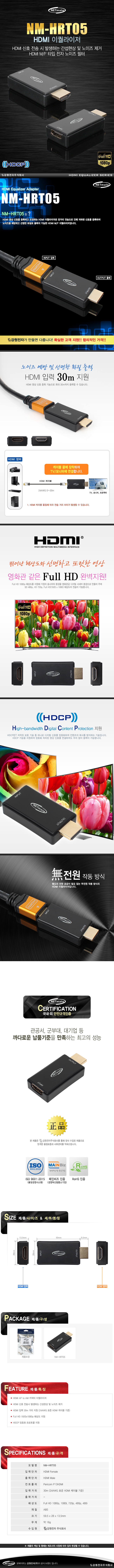 강원전자 넷메이트 NM-HRT05 HDMI M/F 이퀄라이저(전자 노이즈 필터)