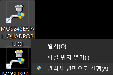 [바팅 화면]에 생성된 아이콘 중에서 [MOS24SERIAL_QUADOPRT.EXE]라는 프로그램 아이콘이 있습니다.