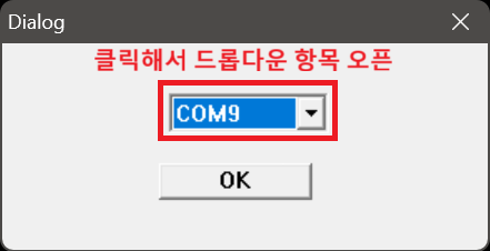 이후, 'COM Port Number' 글씨 옆에 있는 드롭다운 항목을 클릭해서 COM 포트 번호 목록을 엽니다.
