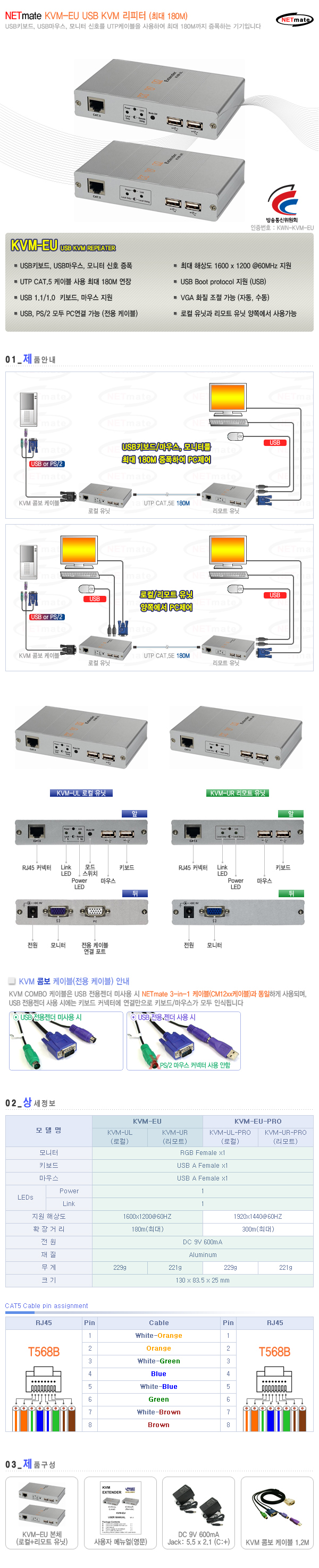 강원전자 넷메이트 KVM-EU USB KVM 리피터(최대 180m) KVM-EU