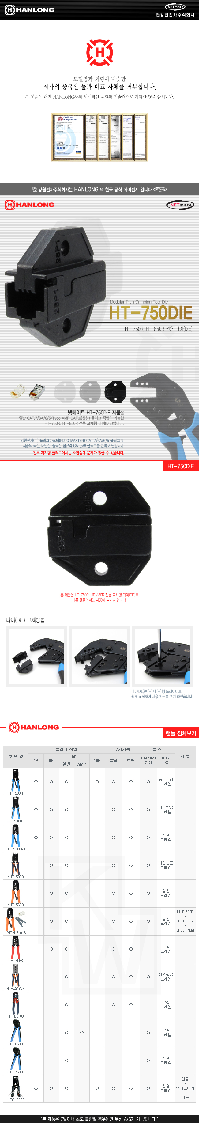 강원전자 넷메이트 HT-650R/HT-750R/HT-850R 일반 CAT.7/6A/6/5/Tyco AMP CAT.6(신형) 플러그 다이 HT-750DIE