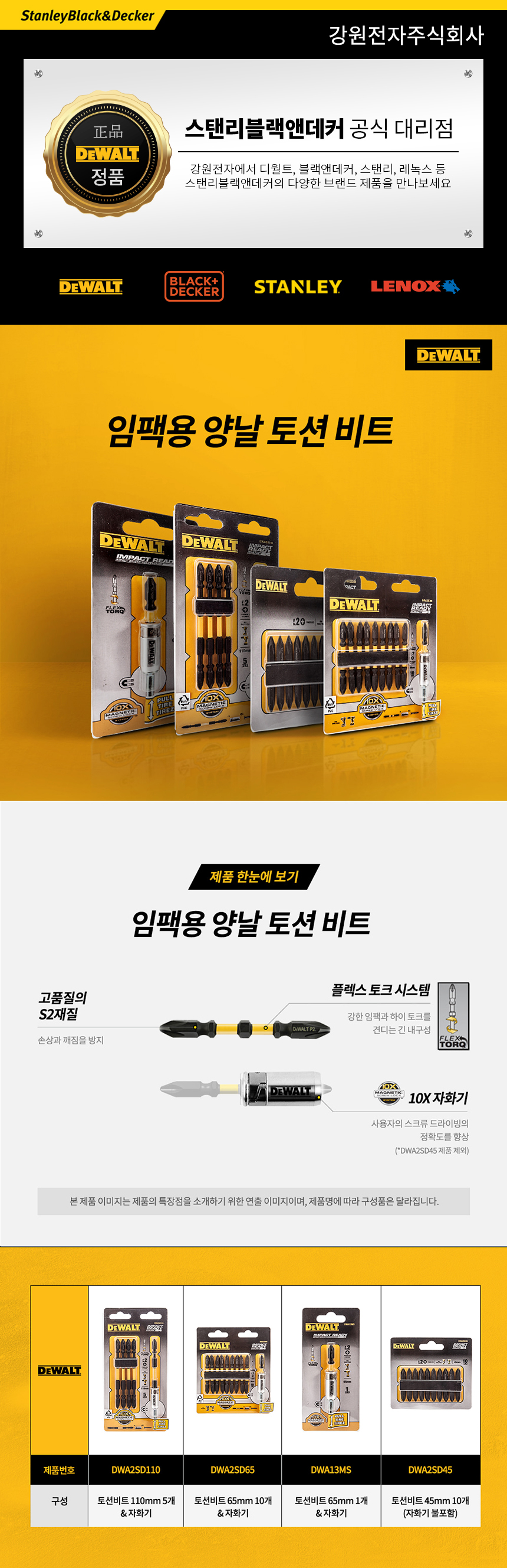 Dewalt, 임팩트드라이버, PH2-PH2, 양날비트, 양날토션비트, 토션비트, PH2, 십자드라이버, 45mm