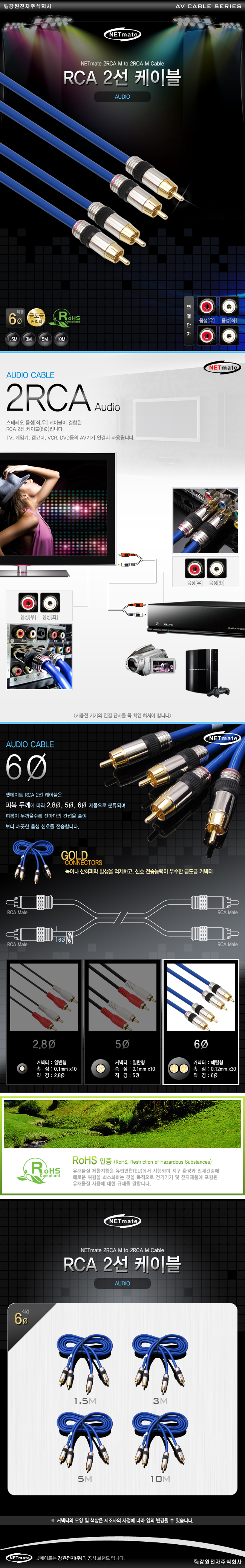 강원전자 넷메이트 NMA-2R030S RCA 2선 케이블(6Ø) 3m NMA-2R030S