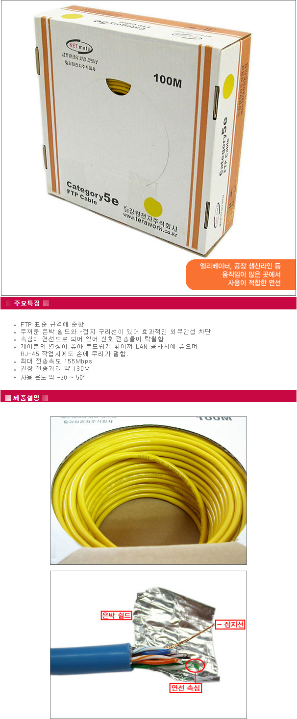 강원전자 넷메이트 NMC-FTP07 FTP 케이블 CAT.5e YELLOW(연선 100m)