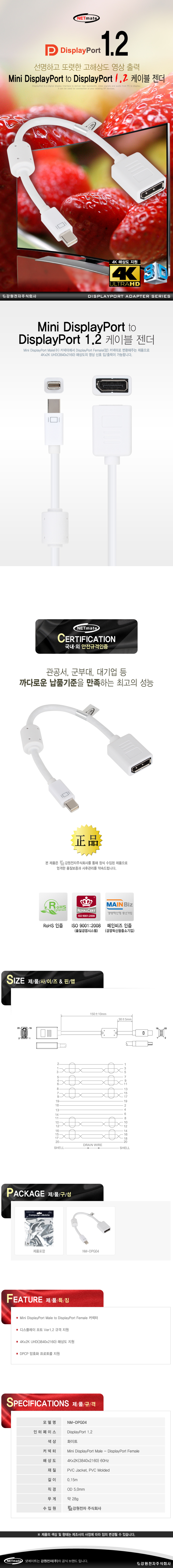 강원전자 넷메이트 NM-DPG04 Mini DisplayPort to DisplayPort 1.2 케이블 젠더(화이트)