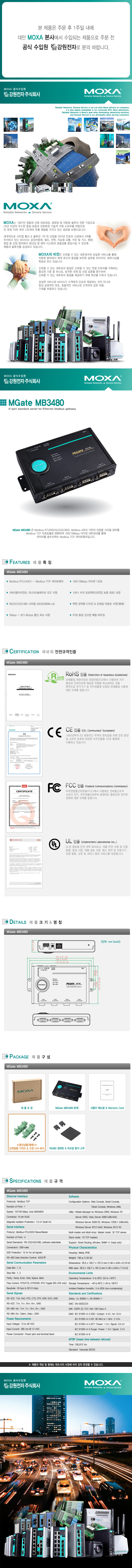 MOXA MGate MB3480 4포트 RS232/422/485 Modbus TCP 게이트웨이 MGate MB3480