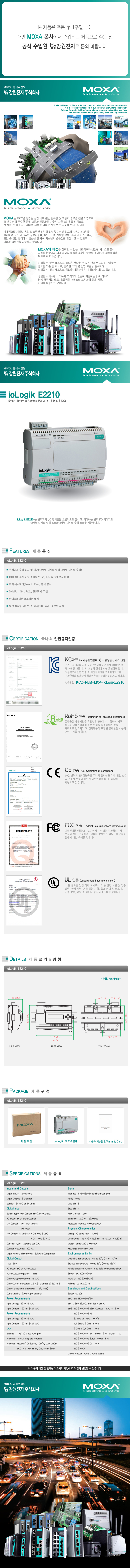 MOXA ioLogik E2210 원격 I/O 제어기(12 Digital Inputs, 8 Digital Outputs) ioLogik E2210